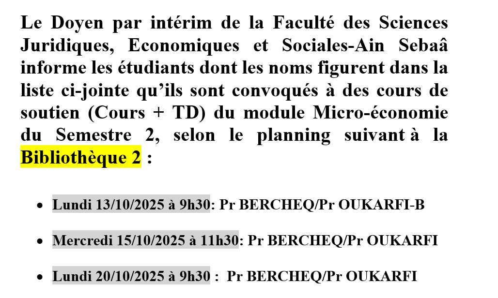Pour plus d’information veuillez contacter le Chef de Service de Scolarité.