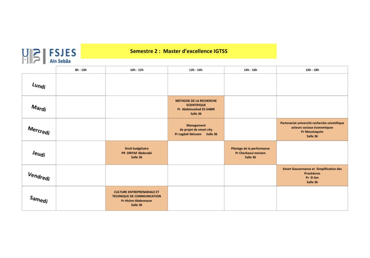 Emploi du temps -MASTER D’EXCELLENCE ‘IGTSS’-Semestre 2