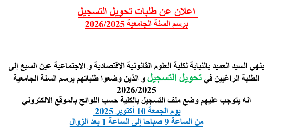اعلان عن طلبات تحويل التسجيل 2025/2026